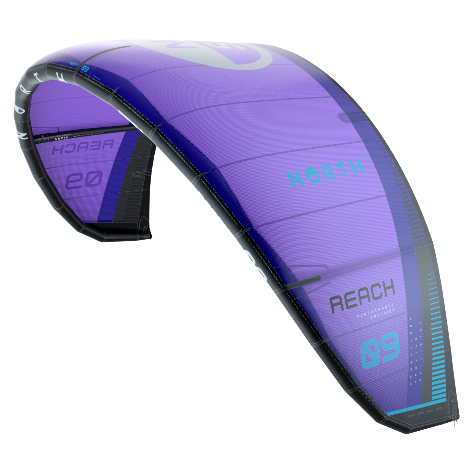 Lively, nimble, and easy to ride, the Reach is our most versatile go-to kite for all conditions. Lighter overall with more reactive steering, the 2026 Reach has a slimmer N-Max2 LE for faster-flying and extra bridle points for structural support. The kite's new profile enables cleaner airflow and a smoother feel, with more lift for easier transitions. A more swept design, slightly higher aspect ratio, and refined bridling deliver more direct steering and dynamic recovery, with quick, responsive depower. It excels in light wind and surf, and gives rise to confident boosts, freeride and freestyle. In the 13-19m, the light wind Reach is fast-flying with consistent drive forward.